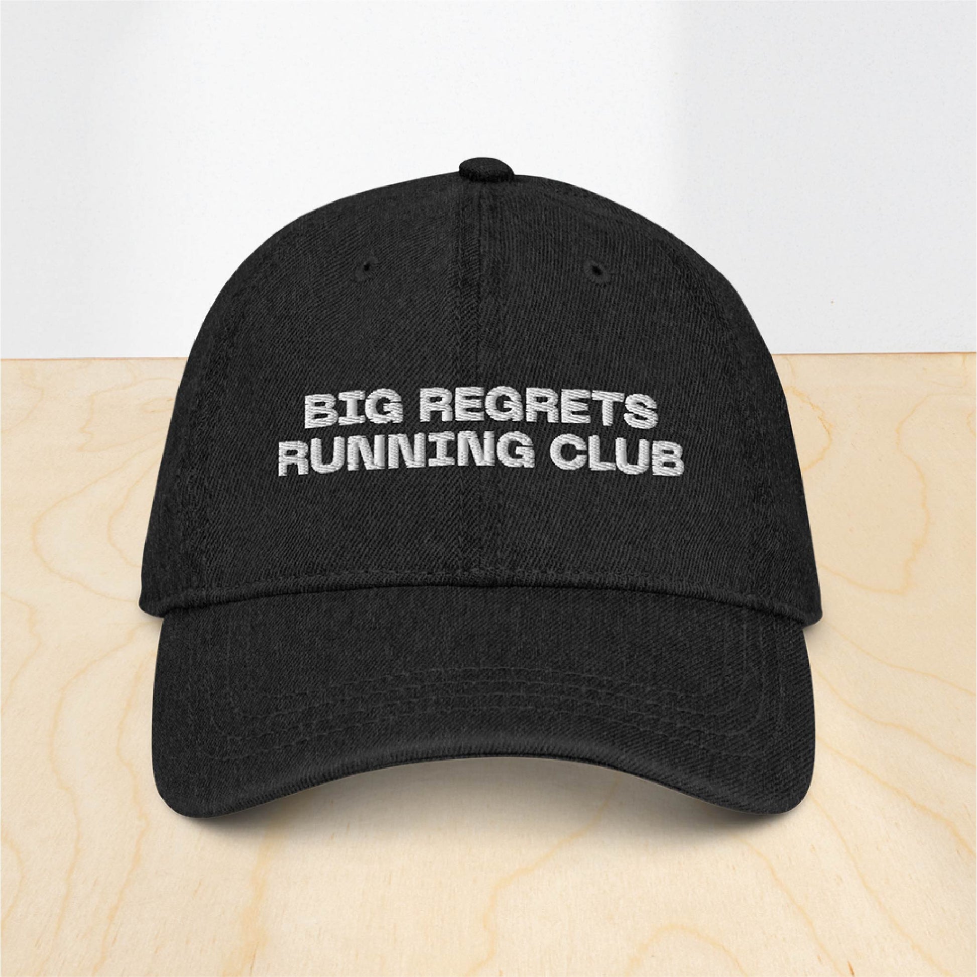 Embroidered denim hat tailored for the runners with regret! Join the world's most honest running club.